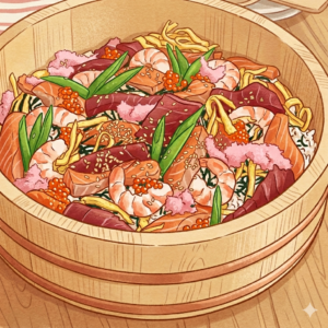 • 散壽司:蝦代表長壽,蓮藕代表前途通達。