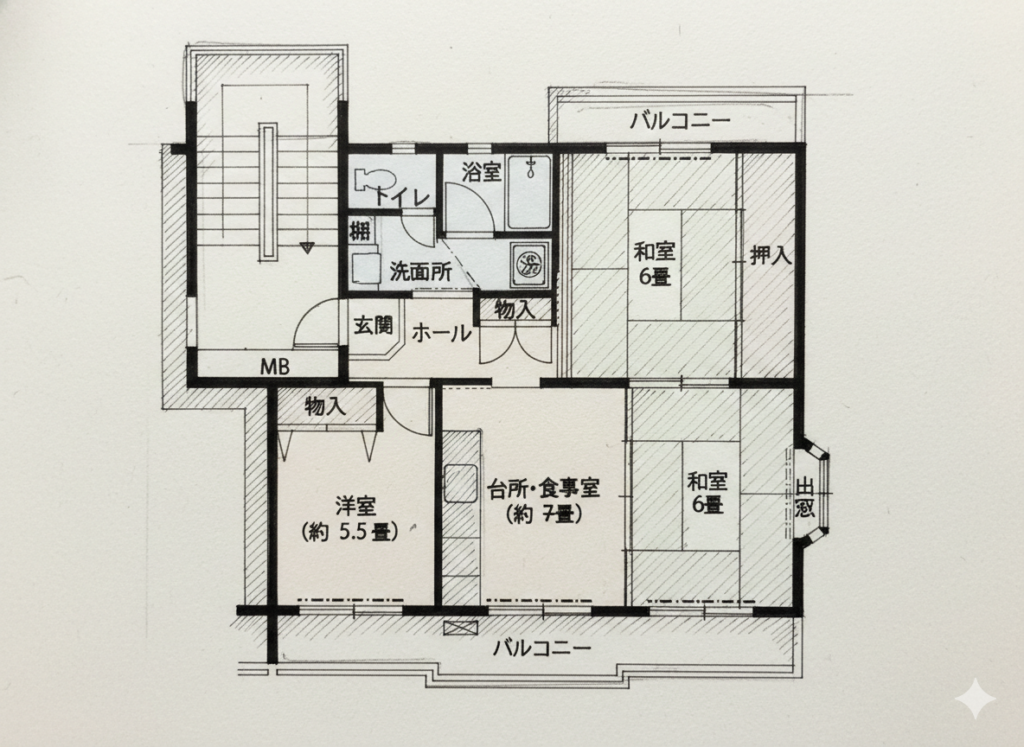 第五,這類老式團地的樓間距普遍較大,採光良好,多為南北通透設計,朝南的陽台寬敞,晾曬衣物相當方便,這一點在實際生活中非常加分。