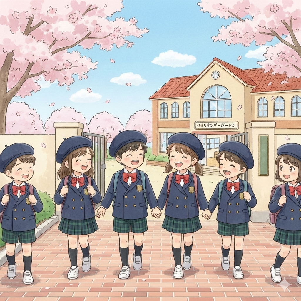 私立幼稚園的一大特色,或許便在於其講究的制服設計。園內無論男女,皆著襯衫與格紋背帶褲,外搭西式外套,再配以禮帽與同款風格書包。每日登園之際,孩童們往往顯得格外精神奕奕。